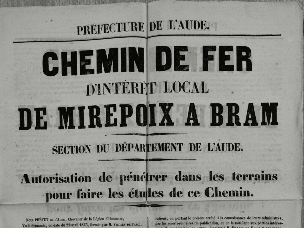 La voie ferrée finalement construite entre Bram et Lavelanet est le fruit de compromis, de négociations… et de rapports de force. Départements de l’Ariège et de l’Aude, arrondissements de Carcassonne, Limoux et Castelnaudary : chacun voulait être le point d’aboutissement de la ligne.