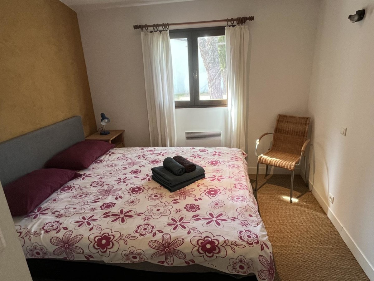 dans cette unité d’habitation se trouvent un séjour avec cuisine donnant sur la terrasse avec mobilier de jardin, Salle d’eau avec WC, une chambre avec 1 lit en 200/210 et deuxieme chambre avec 1 lit en 160/210