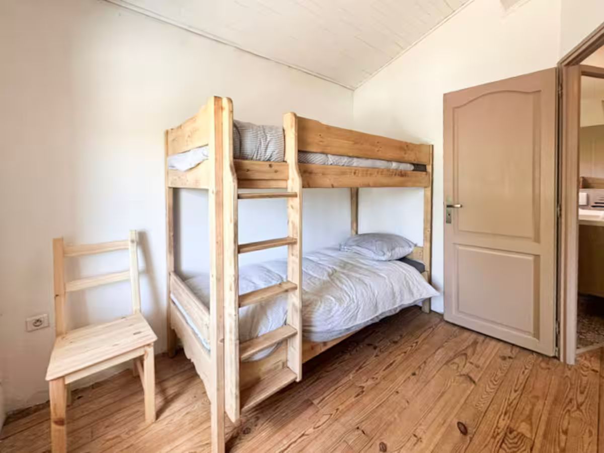 A l’étage, chacun trouve sa place. Trois chambres dispose d’un lit double et de dressings pour se sentir chez soi. Une quatrième chambre avec lit superposé ravira les plus jeunes.