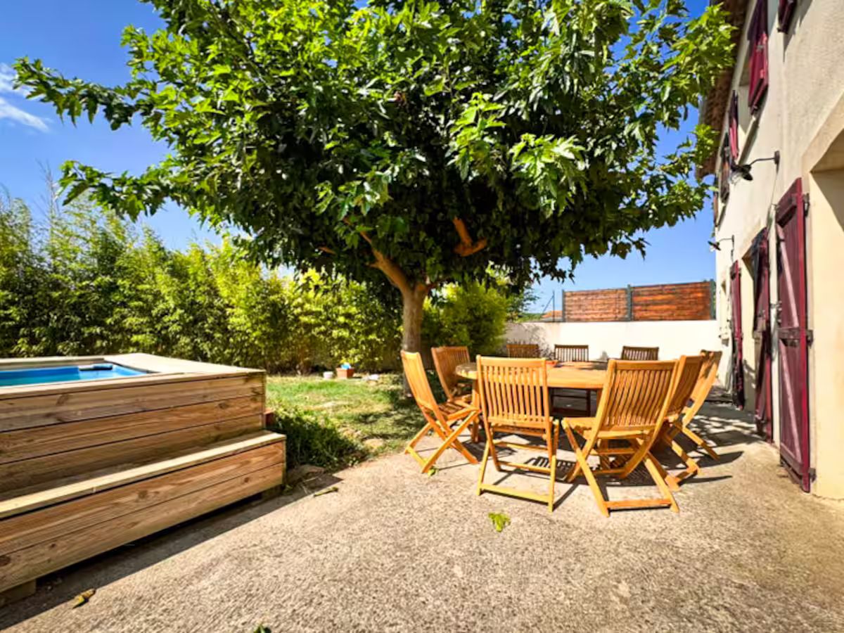 Côté extérieur, profitez d’un grand jardin clos, d’un barbecue pour les repas d’été et d’une piscine hors sol (50 cm de profondeur), parfaite pour se rafraichir en toute sécurité.