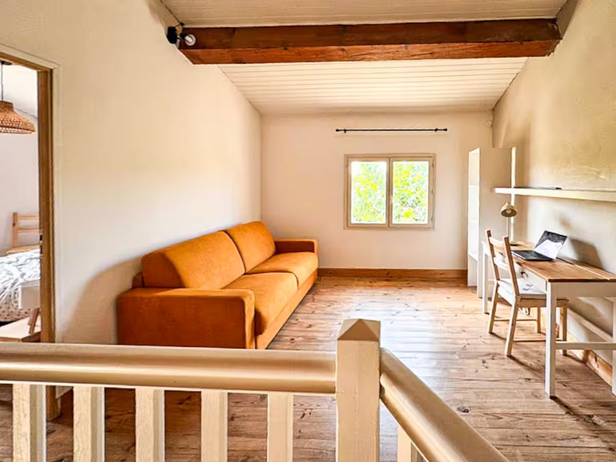 Un espace bureau cosy accueille aussi un canapé convertible pouvant faire dormir deux personnes confortablement. Le linge de lit est bien sûr fourni.